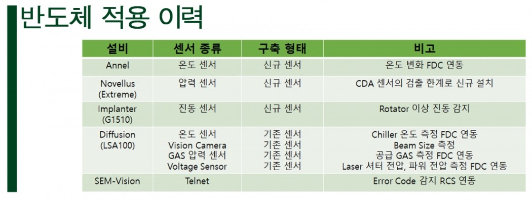 지원 센서 : 전력량 센서(RS-485 Ethernet 통신 방식 모두 지원), 유량/Gas 등의 Flow 센서, 정전기 센서,
