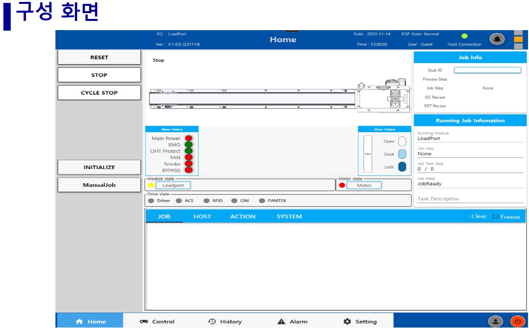 OHT ↔ Load Port ↔ 설비 (투입/배출)